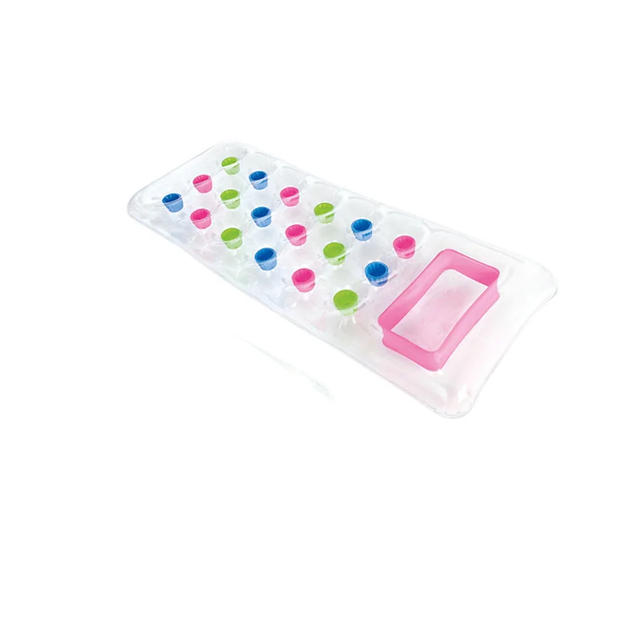 Матрац для плавання має зручний підголовник, конструкцію у формі склянок, що забезпечує додаткову жорсткість, дві секції, ремкомплект. Вага 1,35 кг. Товщина плівки 0,28 мм. У кульці, 25-24-3,5 см.