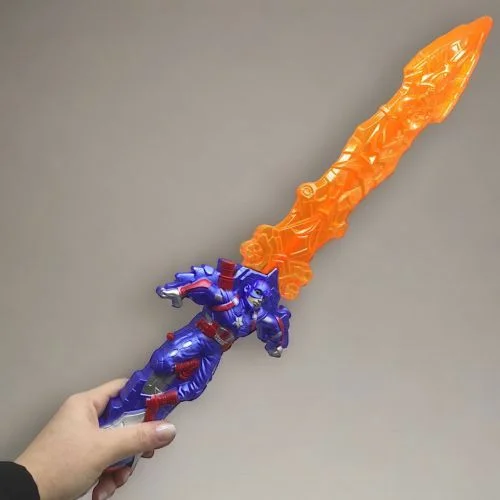 Незвичайна та захоплююча іграшка у вигляді меча з рукояткою у стилістиці популярного супергероя. Креативний дизайн та світло-звукові ефекти обовʼязково привернуть увагу будь-якої дитини. При включенні меч починає яскраво світитись різними кольорами і відтворює звуки поєдинку. Працює від 3-х батарейок АА (немає в комплекті). Довжина меча – 58 см.