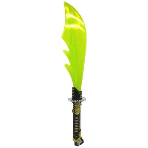 Дуже незвичайна та захоплююча іграшка у вигляді меча у футуристичному дизайні. Креативний дизайн та світло-звукові ефекти обовʼязково привернуть увагу будь-якої дитини. При включенні меч починає яскраво світитись різними кольорами і відтворює звуки поєдинку. Працює від 3-х батарейок АА (немає в комплекті). Довжина меча – 67 см.