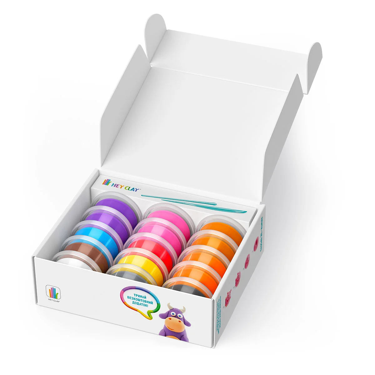 - До меганабору входить 15 баночок пластиліну різного кольору.