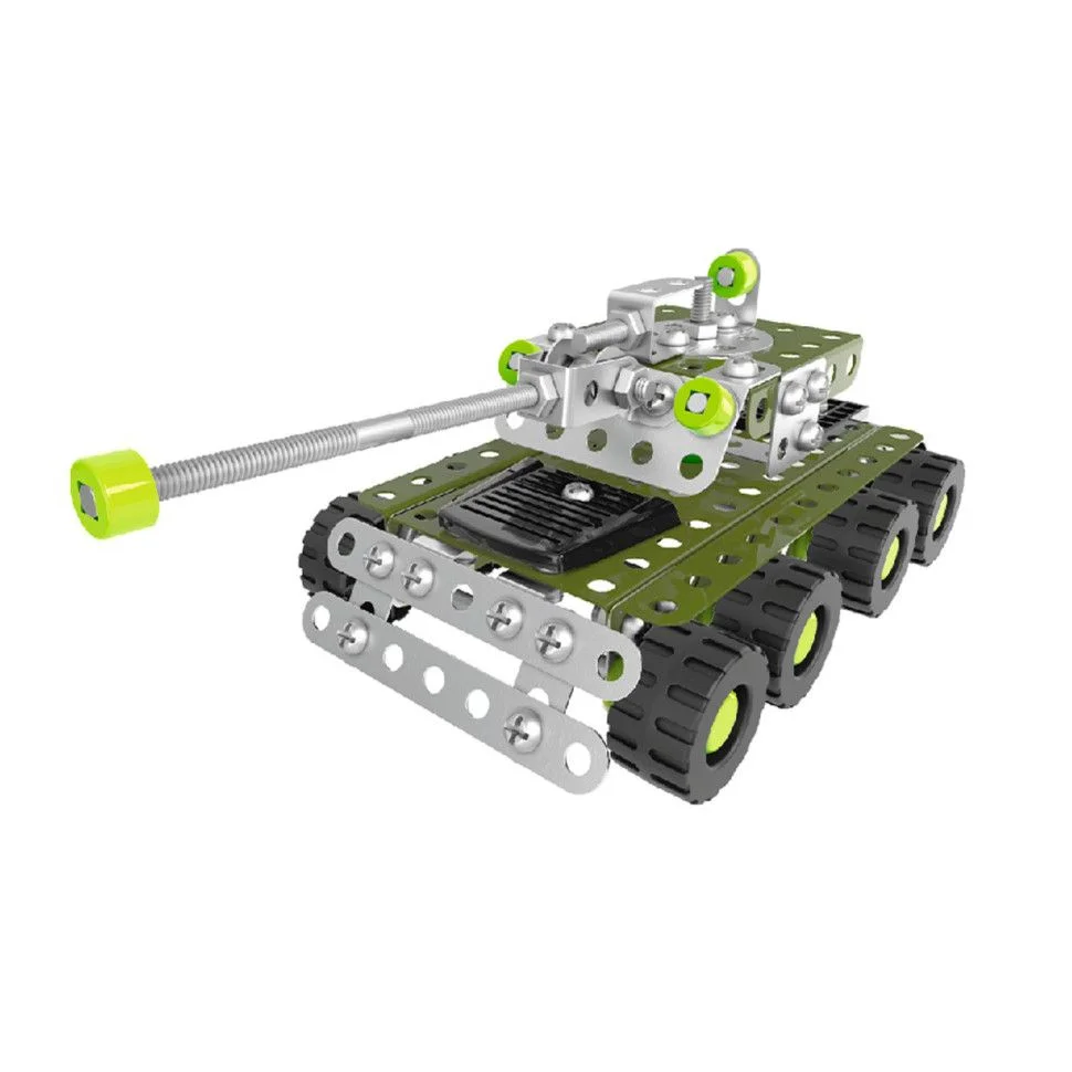 Займаючись із металевим конструктором, дитина освоює основи конструювання та інженерної справи, а також розвиває дрібну моторику рук, просторове та логічне мислення. Металевий конструктор Танк від виробника ТехноК стане чудовим подарунком для дитини від п'яти років. Зі 174 деталей малюк може сконструювати за інструкцією танк або проявити свою фантазію та креативність та зібрати другий вид транспорту.