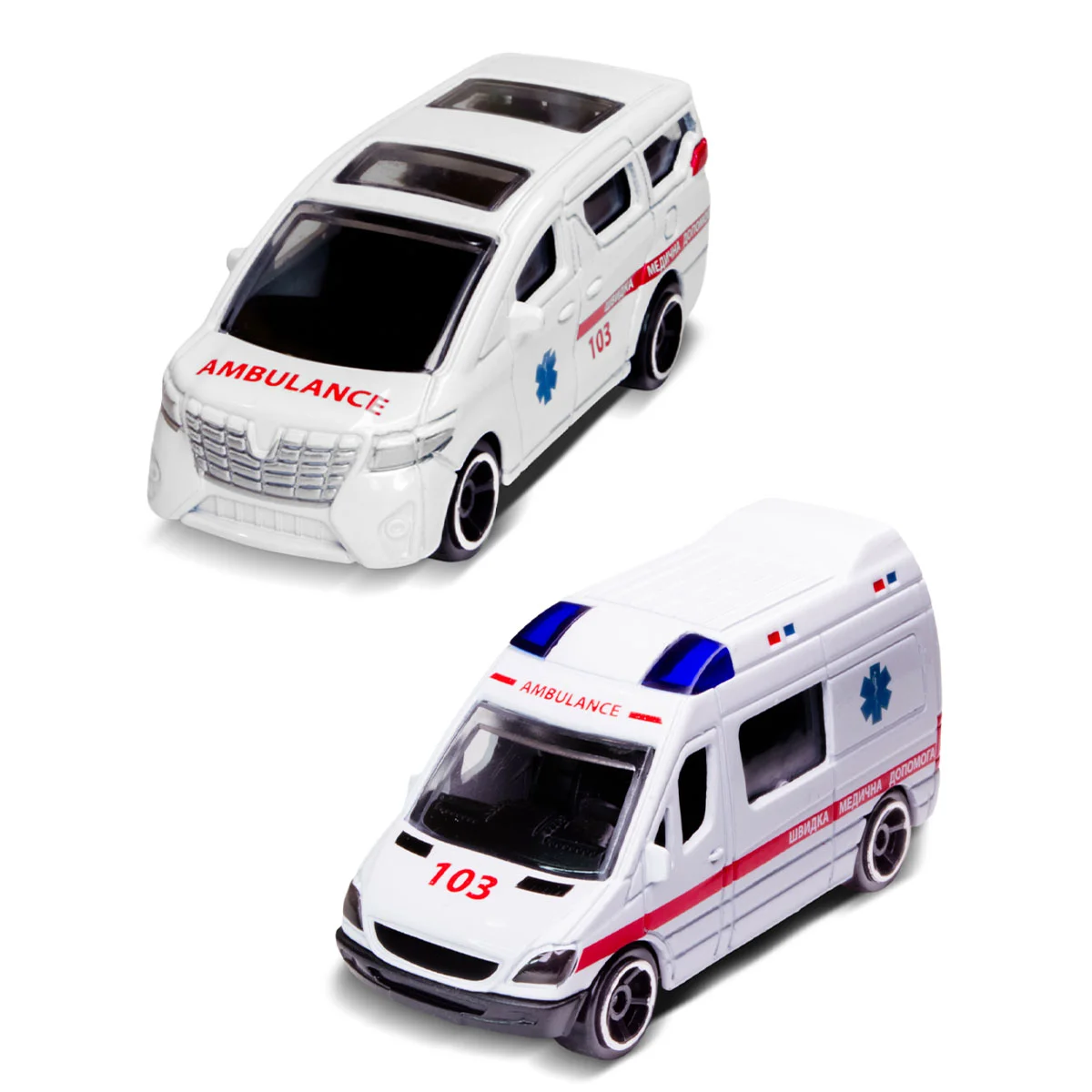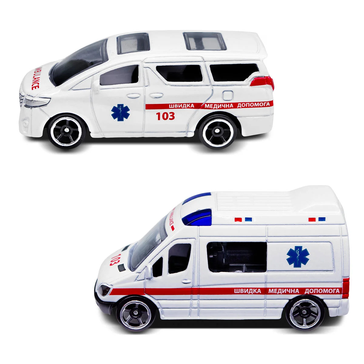 - У дисплеї представлені такі мінімоделі: швидка допомога, пожежна машина та сміттєвоз.