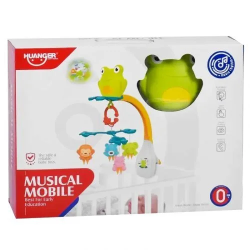 Мобіль на ліжечко у вигляді жаби – це чарівний та функціональний аксесуар для дитячої кімнати. Центральна фігура жаби обертає іграшки у вигляді різних тварин, привертаючи увагу та розважаючи вашого малюка.