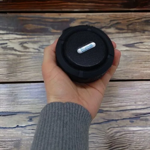 Бездротова колонка для ванни "Wireless Speaker C6". Оснащена зручною присоскою, за допомогою якої колонку можна прикріпити до стіни. У комплекті також є карабін, за допомогою якого можна підвісити колонку. Заражається від USB (є в комплекті). Є слот для картки памʼяті. Колонка водонепроникна (не рекомендується повністю занурювати під воду). Розмір: 9х9х5 см.