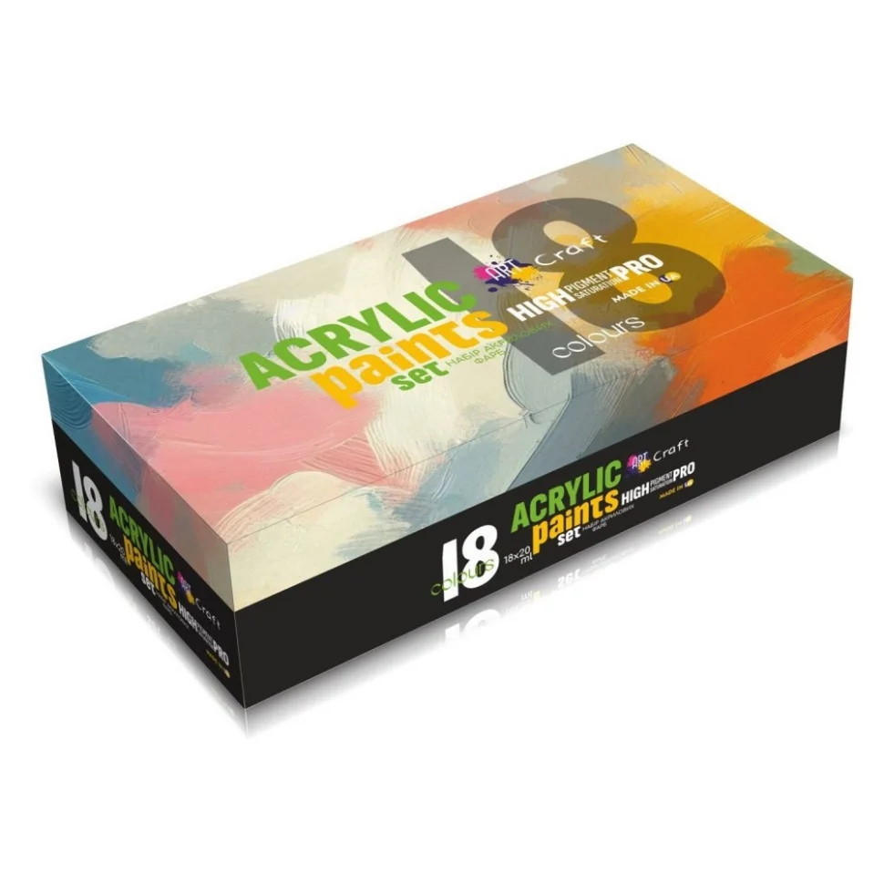 Акрилова фарба від Art Craft – це якісний вибір для творчості та декору. Відрізняється яскравими кольорами, високою покривною здатністю та швидким висиханням. Ідеально підходить для різних поверхонь: дерева, паперу, тканини, ДВП та інших матеріалів. Легко змішується, не вицвітає з часом і створює стійке глянцеве покриття. Ідеальне рішення для ваших художніх ідей! Кольори: білий, зелений, коричневий, жовтий, рожевий, червоний, синій, блакитний, помаранчевий, чорний, темно-синій, гірчичний. ПОПЕРЕДЖЕННЯ! Не допускати потрапляння до рота та очей складових набору. ОСОБАМ ВІКОМ ДО 14 РОКІВ ВИКОРИСТОВУВАТИ ПІД НАГЛЯДОМ БАТЬКІВ! Відтінки на зображенні можуть мати незначне відхилення від палітри фарб в наборі. Особливості умов зберігання: зберігати в сухому місці при температурі від +5 до +20 С та відносній вологості не більше 75%. Фарби зберігати зі щільно закритими кришечками, якомога далі від сонячних променів для запобігання передчасного висихання. Продукція відповідає встановленим медичним критеріям Використовувати за призначенням. Склад: високоякісні дисперсії на водній основі та колоранти. Зроблено в Україні