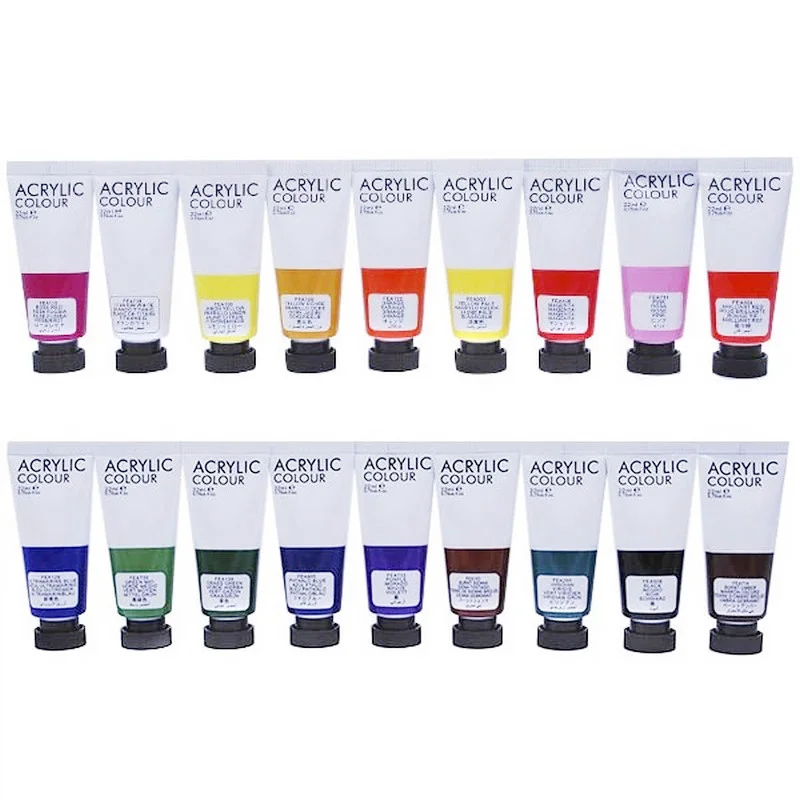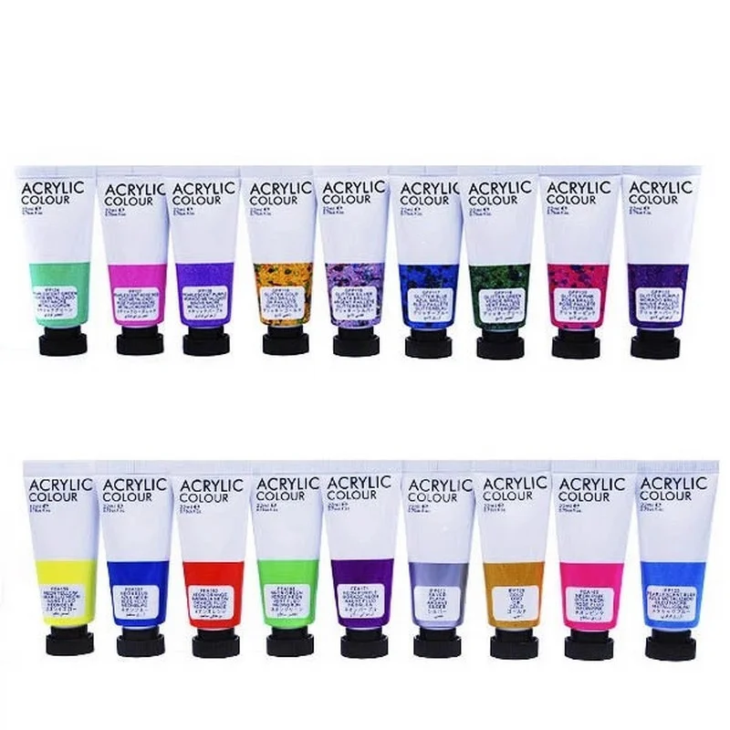 У наборі 36 кольорів по 22 мл: 18 базових для щоденної роботи, 6 глітерних для сяйливих акцентів, 6 металевих для глибини та блиску, 6 неонових для яскравих, помітних деталей. Фарби добре лягають на поверхню, швидко висихають і підходять для різних технік та матеріалів.