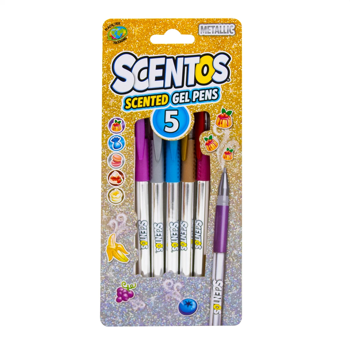 - У наборі 5 гелевих ручок з ароматами солодощів і сяючими металевими кольорами.