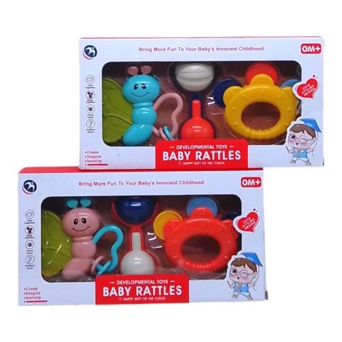 Набір брязкалець включає три яскраві та цікаві іграшки: метелик з прорізувачем для масажу ясен, бубон для розвитку слухового сприйняття та ритму, а також кулька зі зручною ручкою, яку легко тримати в маленьких руках. Всі елементи виконані з безпечних матеріалів та сприяють розвитку моторики, координації та сенсорного сприйняття малюка.