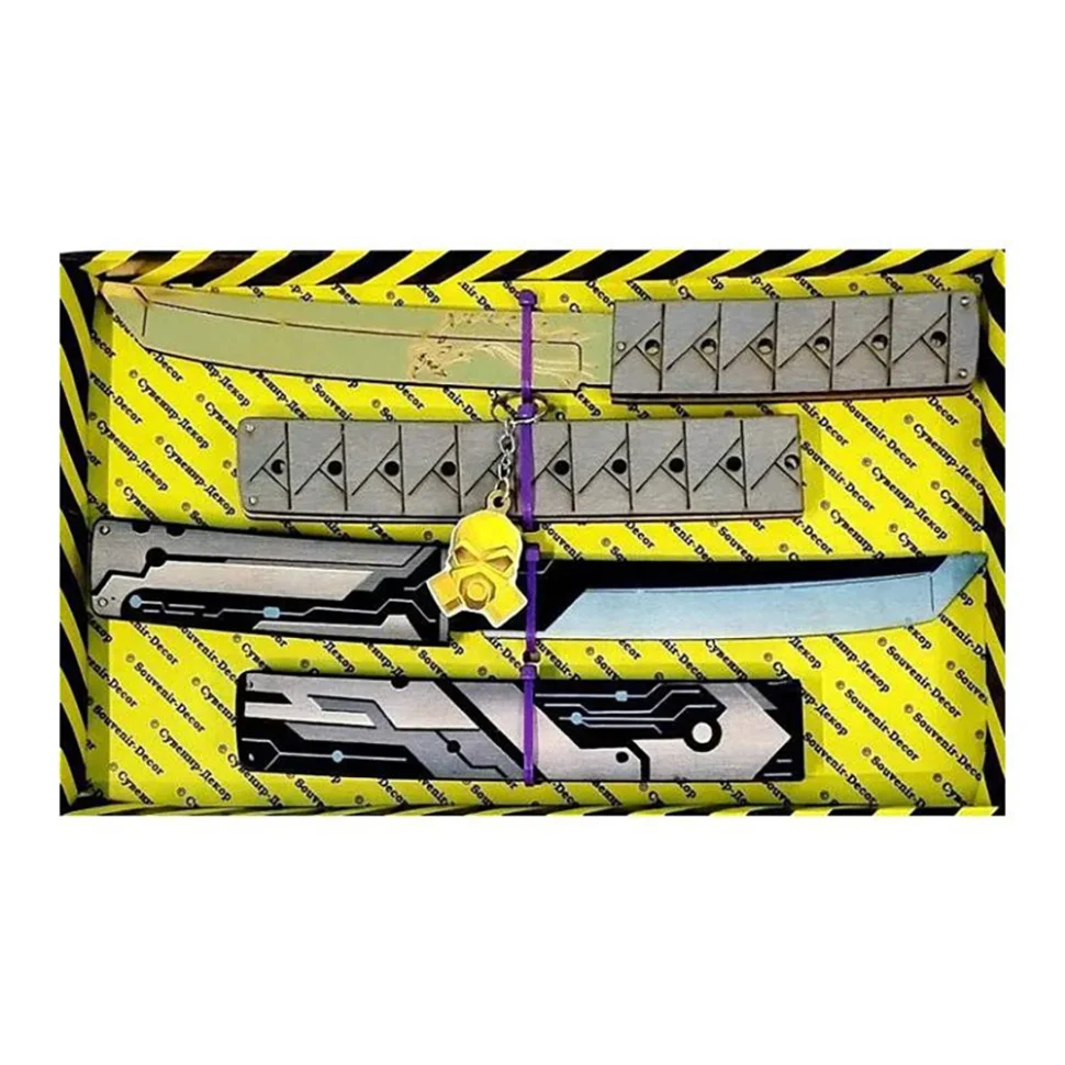 Набір сувенірних ножів - Tanto транзистор і Tanto якудза. Матеріал: фанера. Довжина ножа - 28 см. Чудовий подарунок-сувенір, у комплекті є брелок. Ножі дерев'яні, якісні та міцні. Не заточені, гострі частини закруглені та зашліфовані, повністю безпечні. Для дітей від 6 років.