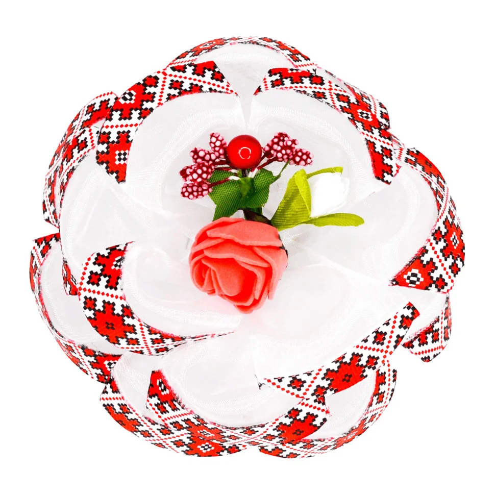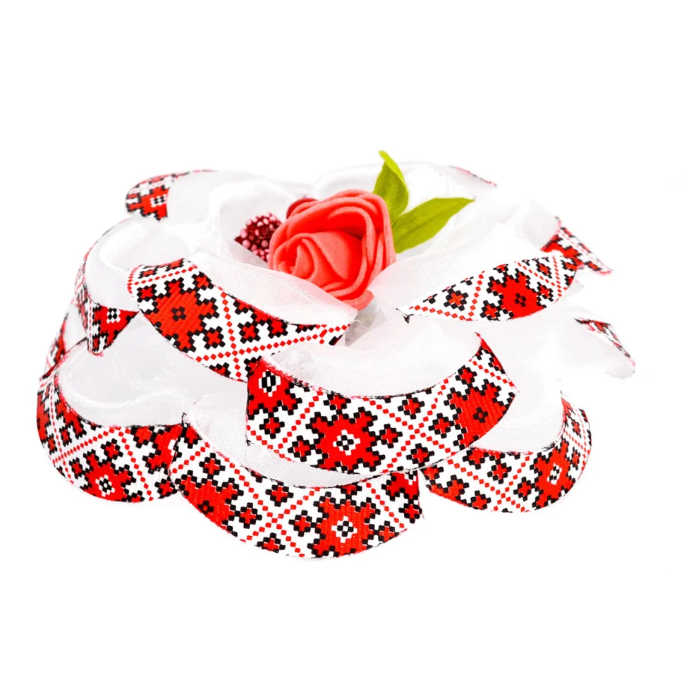 Цей набір з двох бантів в українському стилі випромінює ніжність та елегантність. Кожен бант виготовлений з високоякісних матеріалів, що забезпечує м'якість та стійкість кольору. Головною родзинкою дизайну є вишуканий білий колір, який символізує чистоту та свіжість, ідеально підходить для святкових та повсякденних заходів.