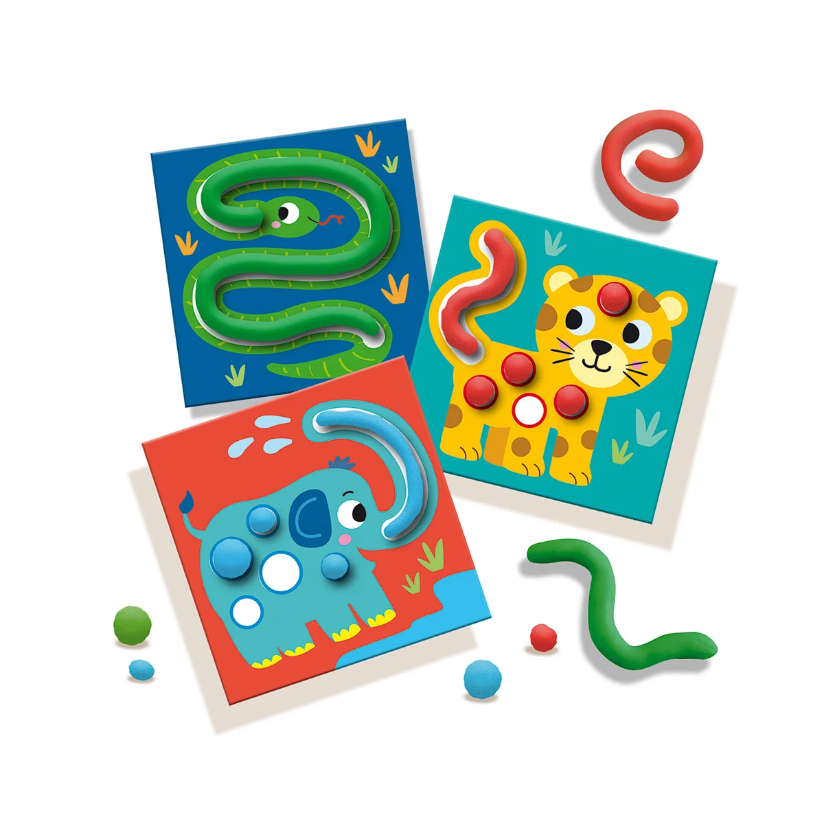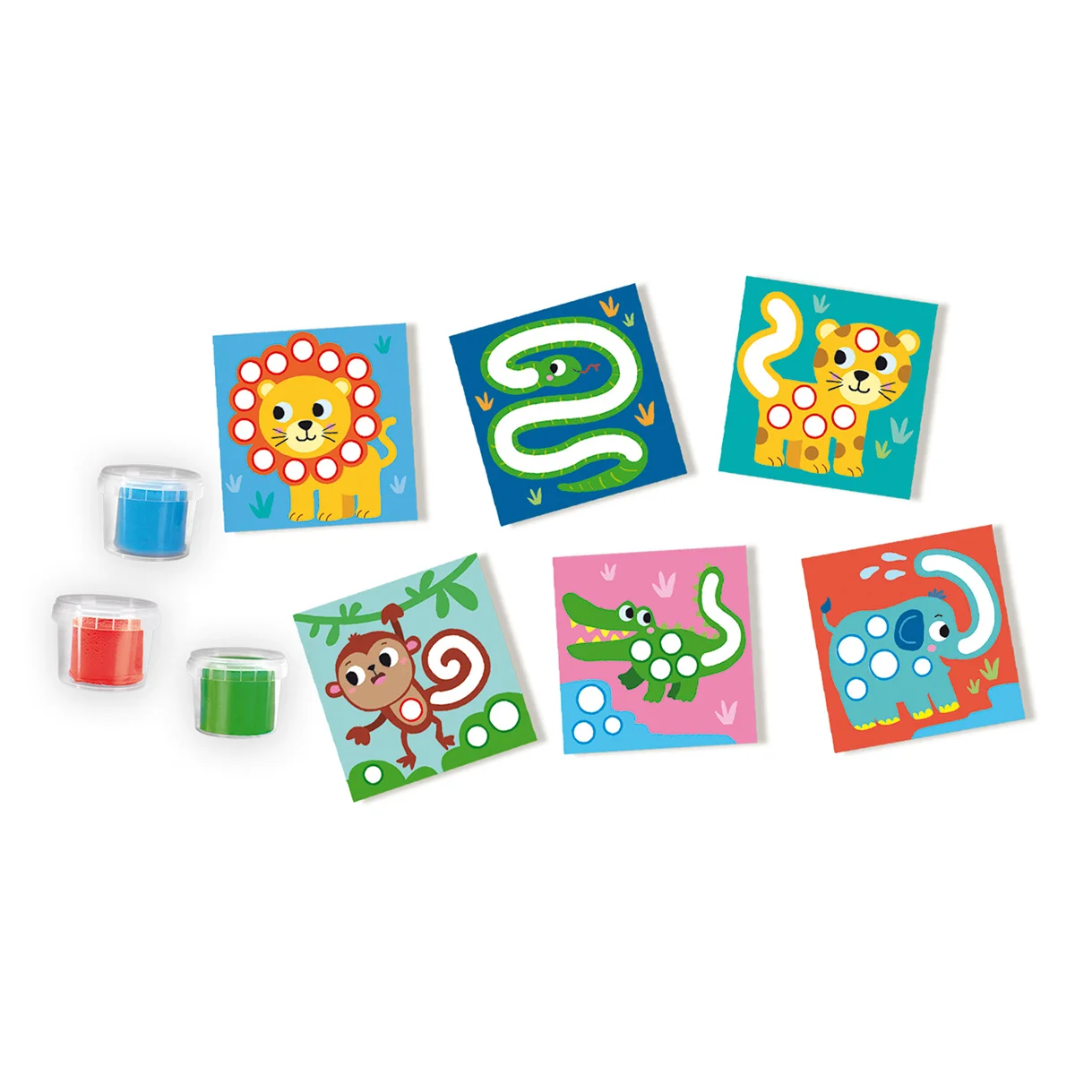 Набір для творчості серії «My first» - КУМЕДНІ ТВАРИНИ - гарантує цікаве вивчення тварин для малюків. Ці картки з завданнями поєднують у собі масу для ліплення, веселощі та розвиток! Кумедні листівки з тваринами можна доповнити масою для ліплення від SES Creative. Поверніть леопарду його плями та допоможіть мавпочці повернути її хвіст. За допомогою карток з завданнями ви можете точно побачити, якого розміру вам потрібно катати з маси для ліплення кульки чи змійки. Таким чином всі завдання успішно виконані! Веселе та легке знайомство з тваринами починається!
