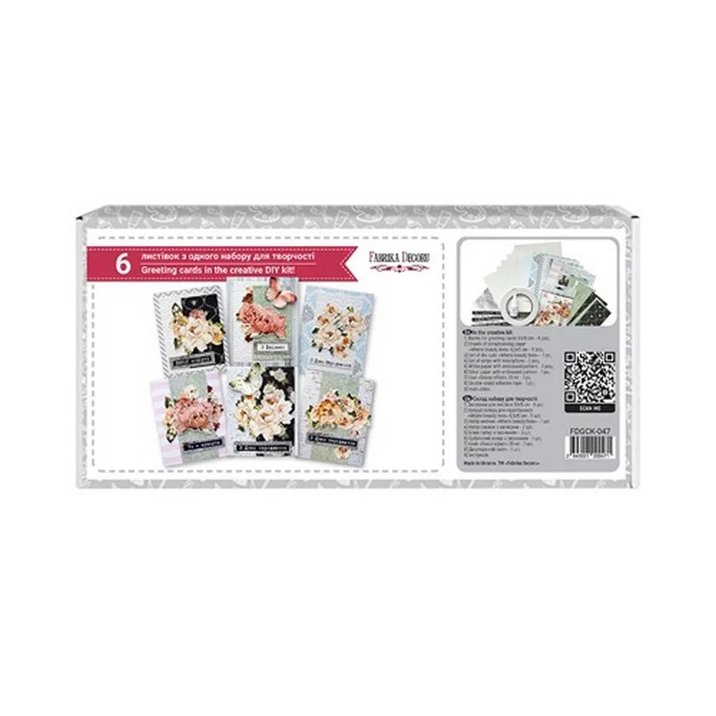 Цей набір дуже простий у збірці. Переглядаючи наші докладні відео інструкції, листівки зможуть зробити навіть діти. Набір продається в подарунковій коробці і може стати чудовим подарунком Вашим друзям, рідним, знайомим. На коробці розміщено Qr код, за яким Ви зможете переглянути відео інструкцію з роботи з цим набором і зі складання кожної листівки.