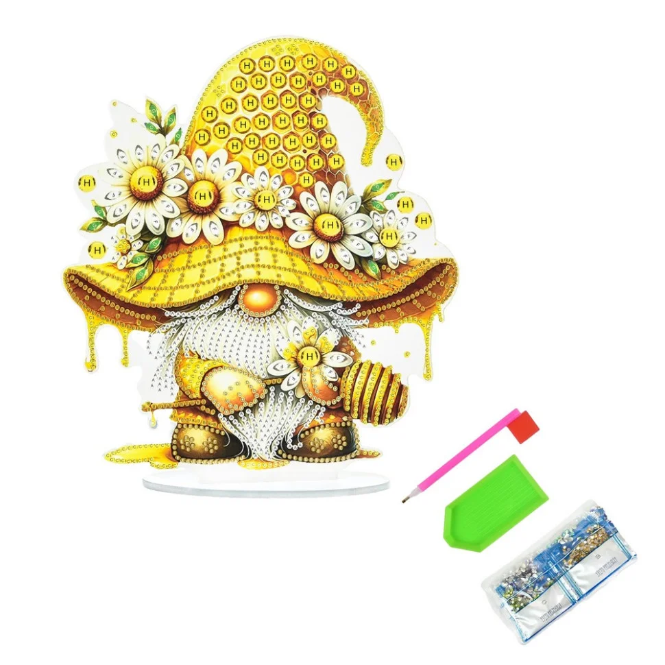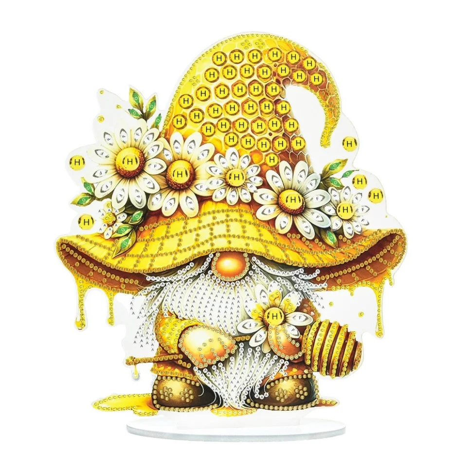 Алмазна мозаїка Strateg ПРЕМІУМ Медові чари гнома на підставці розміром 25х25 см (YKLZ15229)