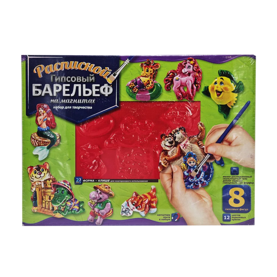 Цей чудовий набір для творчості створений спеціально для юних художників від 8 років та стане чудовим подарунком для тих, хто цікавиться мистецтвом та ручною роботою. Набір дозволяє дітям заглибитись у світ мистецтва та виготовити гіпсові фігури на магнітах.