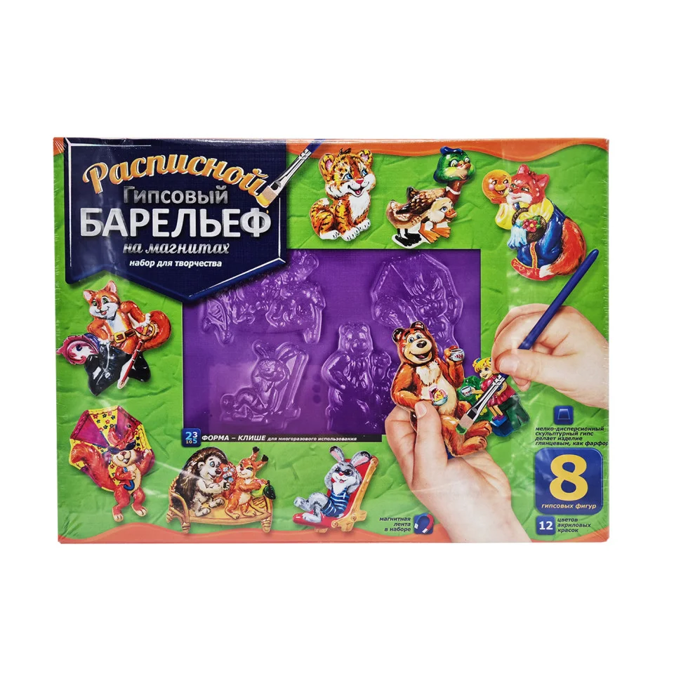 Цей чудовий набір для творчості створений спеціально для юних художників від 8 років та стане чудовим подарунком для тих, хто цікавиться мистецтвом та ручною роботою. Набір дозволяє дітям заглибитись у світ мистецтва та виготовити гіпсові фігури на магнітах.
