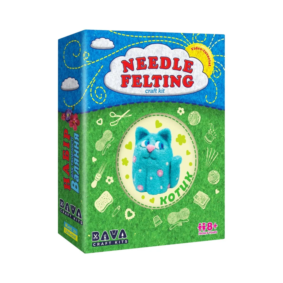 Процес валяння стимулює творчість, дрібну моторику та уяву. Ваші діти або ви самі зможете насолодитися моментами творчості, перетворюючи просту вовну в чудового блакитного котика. Готову іграшку можна використовувати для прикраси кімнати, подарунком для близької людини або просто як власноруч створений символ тепла та уваги.