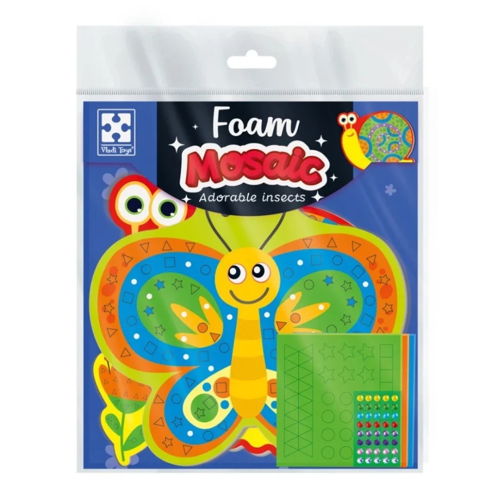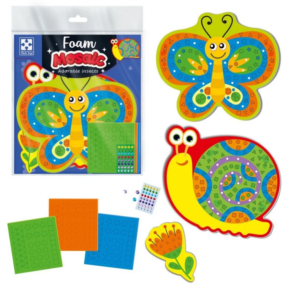 По справжньому літні комашки! Вони полюбляють тепло, сонячні промінці і довгі літні дні. Набір для творчості Vladi Toys зі м'якою мозаїкою та стразами «Чарівні комашки" надає змогу дітлахам прикрасити безтурботних комашин нецупкими частинами мозаїками і сяючими стразами.