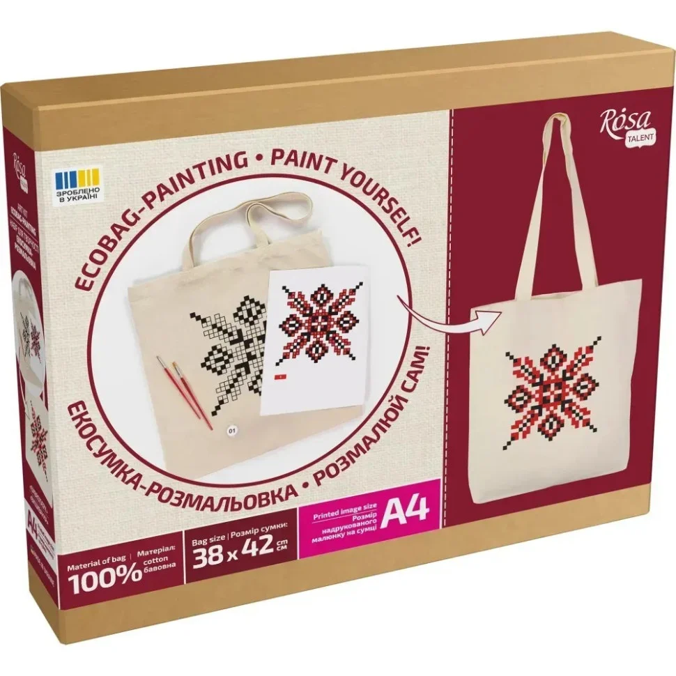Розпис екосумки ROSA Talent – надзвичайно захоплюючий і водночас легкий процес, адже контури малюнка вже нанесені на основу.