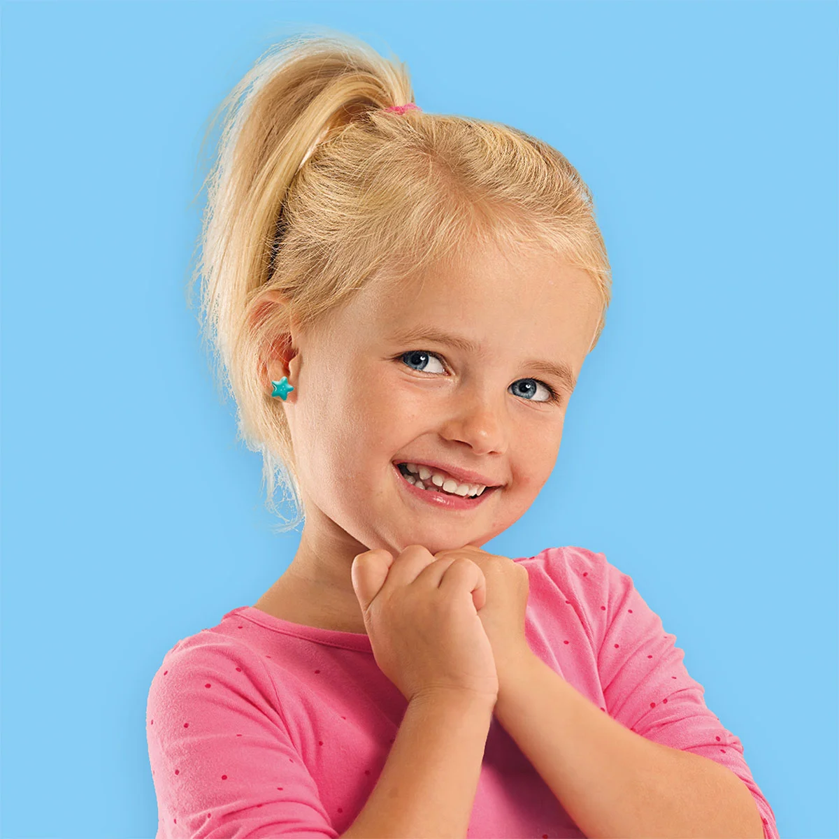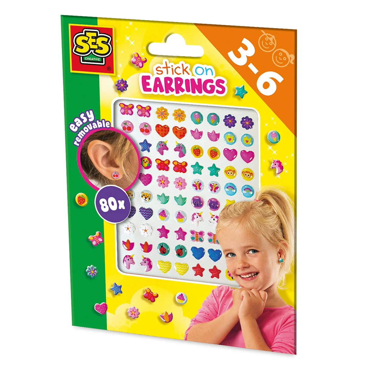 Набір для творчості – Мої перші сережки — це веселий і безпечний спосіб для дівчат спробувати себе в ролі маленьких модниць. 80 яскравих самоклеючих сережок у різних формах і кольорах легко наносяться на шкіру та так само легко знімаються, не залишаючи слідів. Ідеально для рольових ігор, святкових образів або просто для щоденних перевтілень.