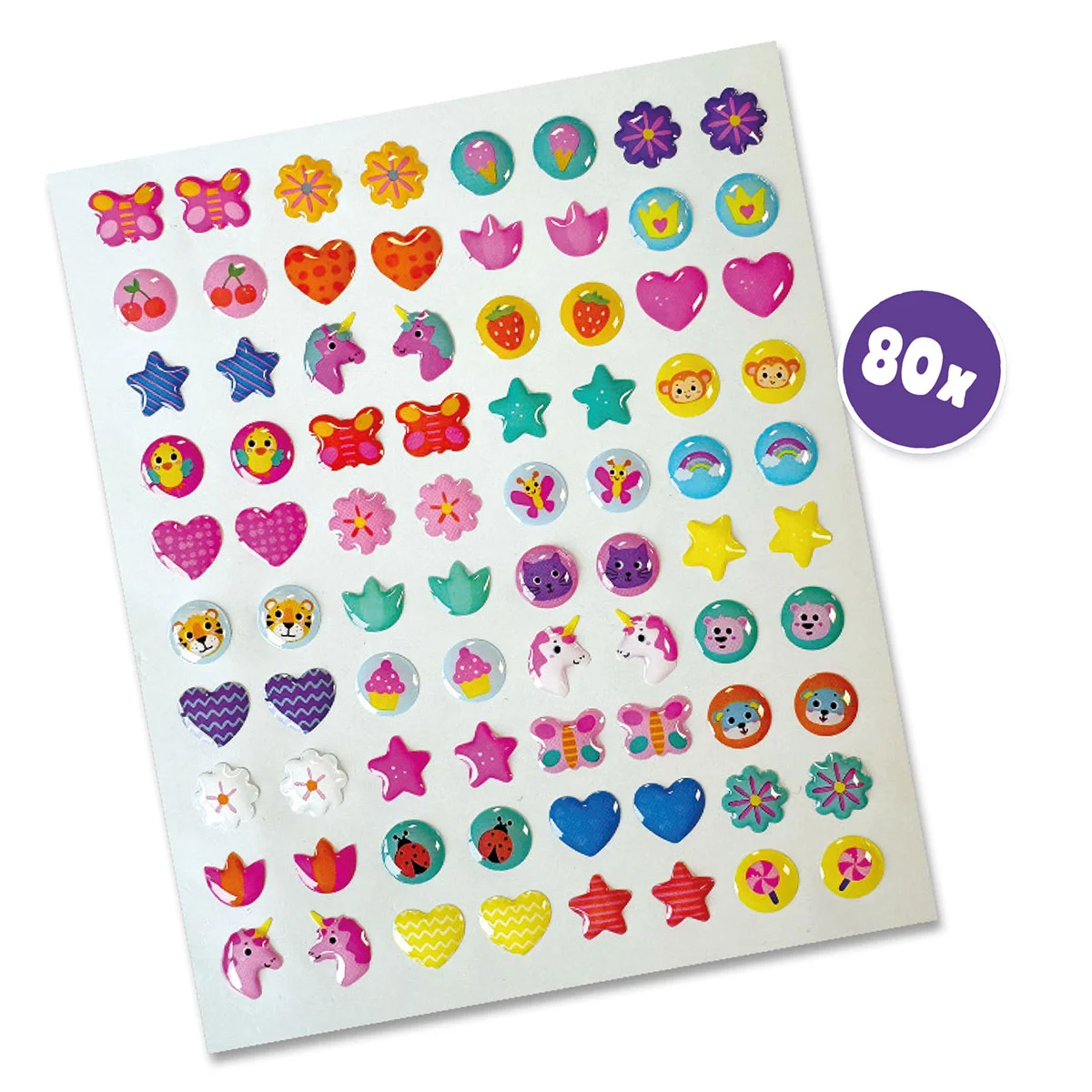 - 80 самоклеючих сережок у різноманітних дизайнах.