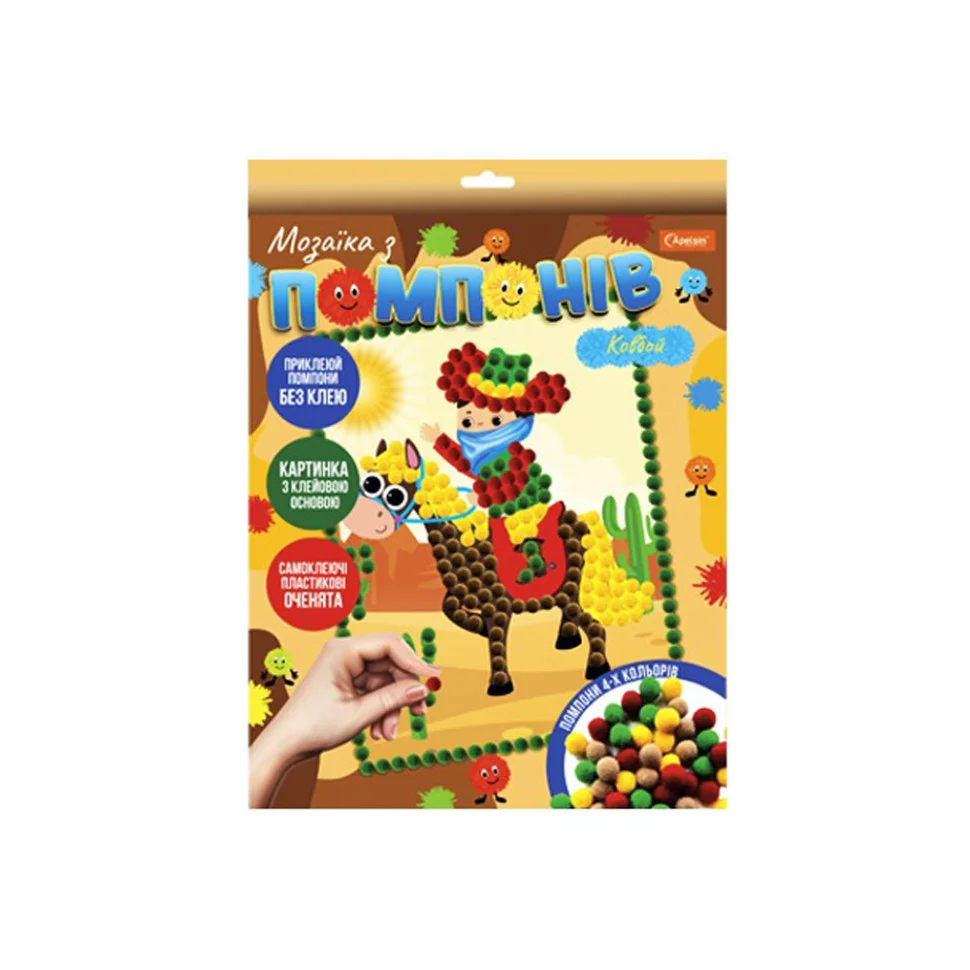 Склад набору: помпони, оченята пластикові, картон целюлозний, папір крейдований, друк офсетний, поліпропілен, ламінація.