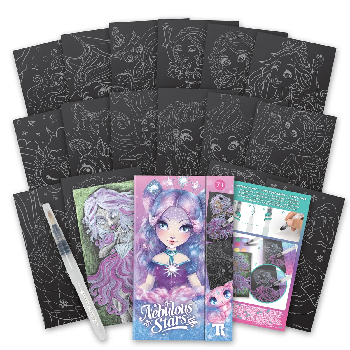 Зірки запрошують вас до створення нових зоряних шедеврів. Це Набір для творчості – Розмальовка з водою: Візьми в дорогу! Відкрийте для себе зоряну та барвисту галактику під кожною з цих 16 картин. Поринайте у різнобарвний світ космосу та відчуйте зоряне натхнення!