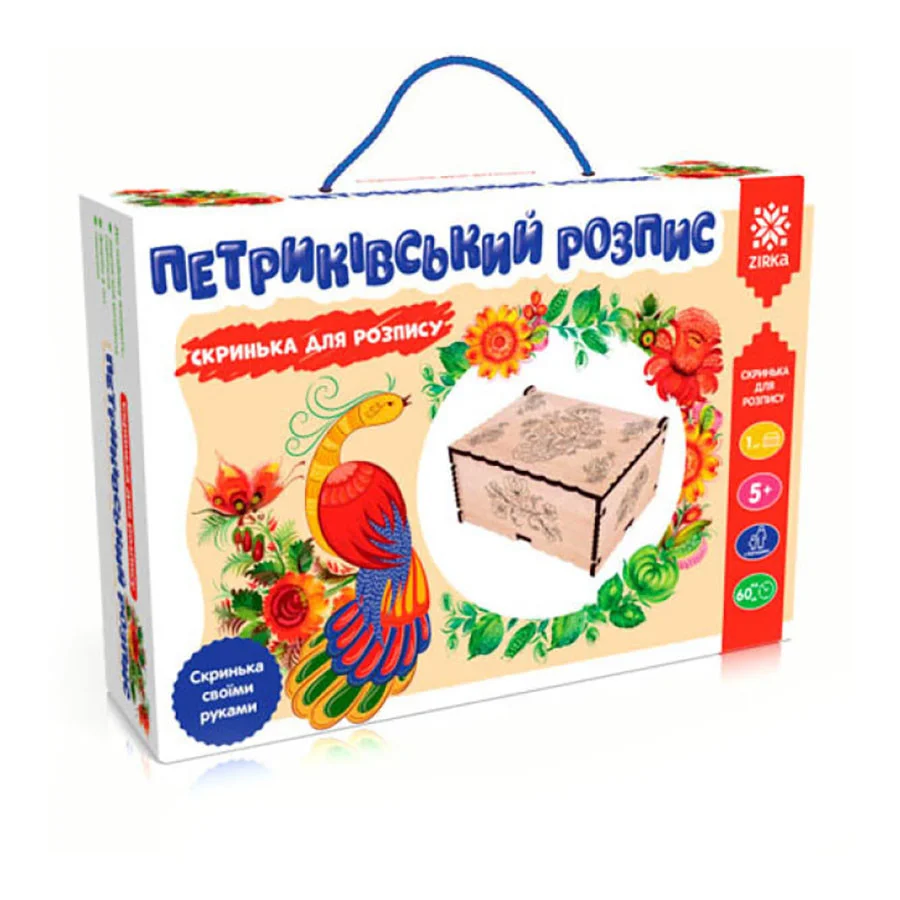 Оригінальна подарункова скринька виконана з дерева. З цим набором дитина дізнається про Лісову мавку і створить своїми руками чудову скриньку, яку можна використовувати для зберігання дрібних прикрас і коштовностей, а також сережок, перснів і брошок.