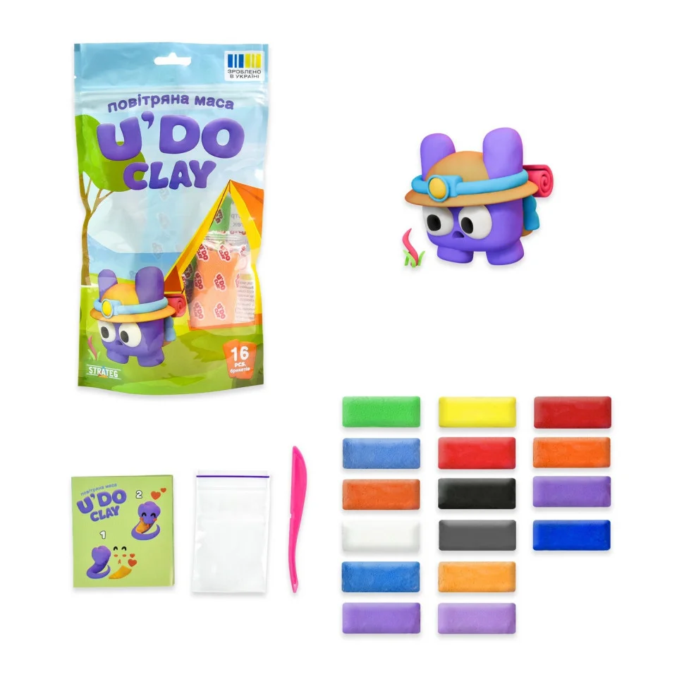 Повітряна маса - прекрасний матеріал для дитячої творчості. В наборі - 16 різнокольорових брикетів, стек для створення різних фігур та пакет на застібці, щоб зберегти повітряну масу, яка залишилася, до наступного ліплення. Яскраві кольори, надійні матеріали, які не тріскаються та міцно тримають задану форму. Процес ліплення розвиває креативність, творчу уяву та дрібну моторику. Ідеально для самостійного дозвілля, часу з друзями чи батьками. Для дітей старше 3 років.