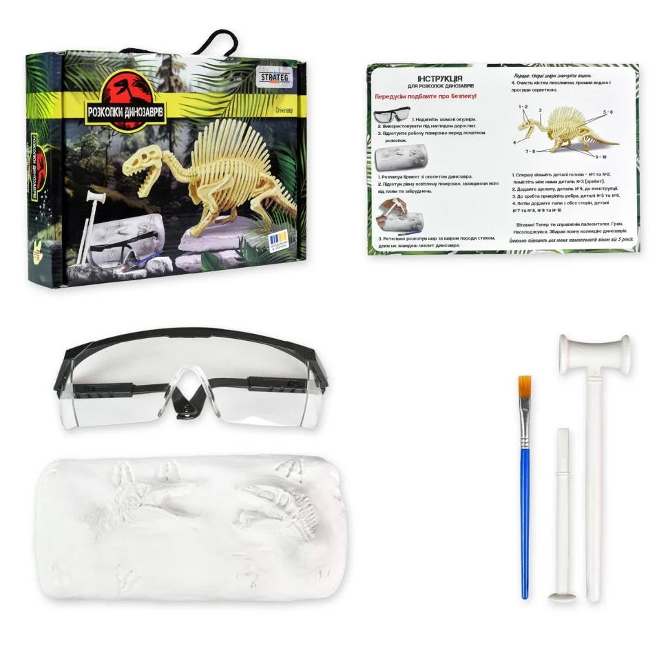 Набір для творчості "Розкопки динозавра" — чудова знахідка для юних дослідників! У комплекті ви знайдете все необхідне: інструменти, захисні окуляри, гіпсовий брикет зі скелетом динозавра та покрокові інструкції. Здається, що всі скам'янілості вже давно відкриті, але в нас є таємний запас! Час вирушати на розкопки та робити власні великі відкриття!