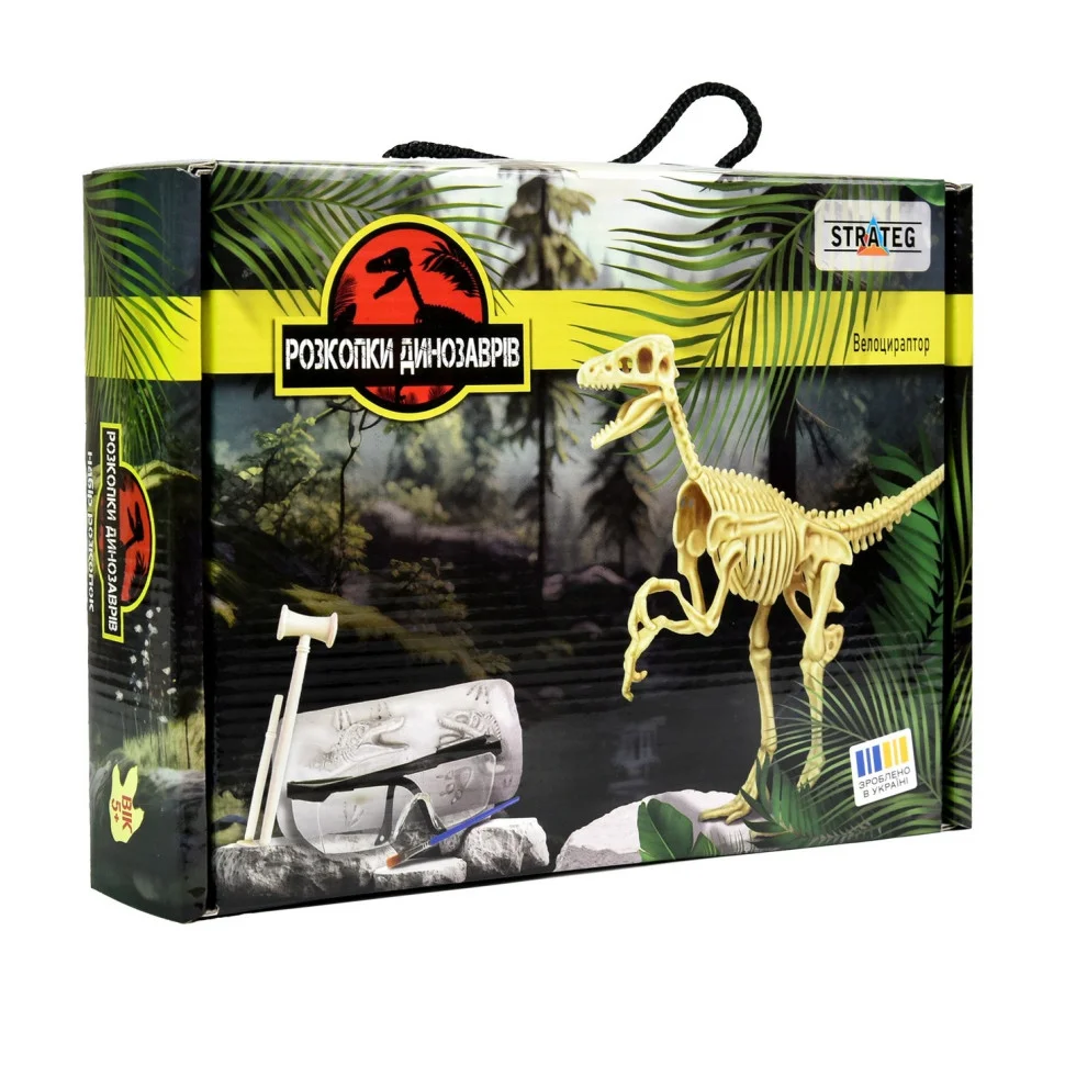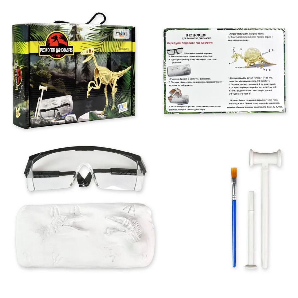 Набір для творчості "Розкопки динозавра" — чудова знахідка для юних дослідників! У комплекті ви знайдете все необхідне: інструменти, захисні окуляри, гіпсовий брикет зі скелетом динозавра та покрокові інструкції. Здається, що всі скам'янілості вже давно відкриті, але в нас є таємний запас! Час вирушати на розкопки та робити власні великі відкриття!