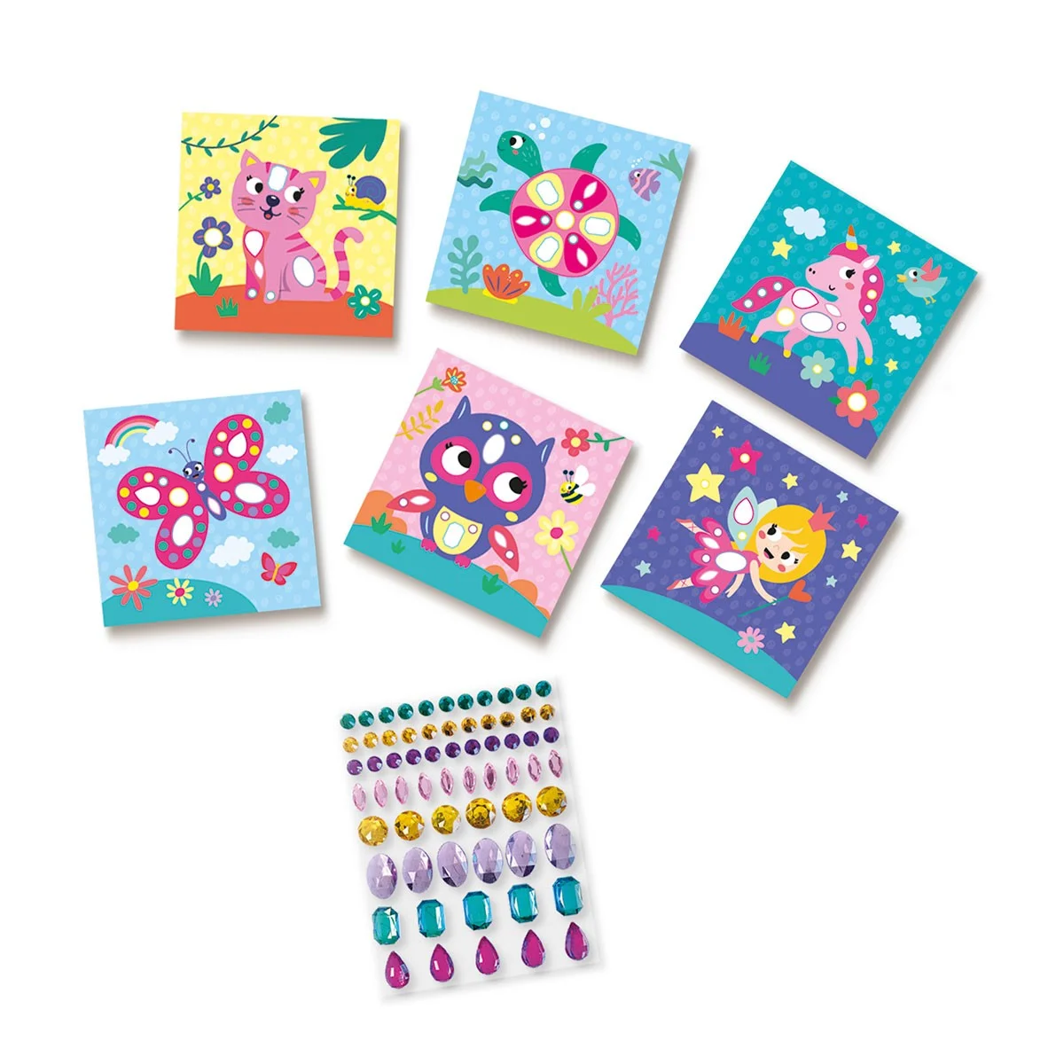 Набір для творчості з алмазною мозаїкою – Велетенські кристали — це чарівна аплікація з великими блискучими камінцями, яка перетворює творчий процес на справжнє сяюче диво. Діти прикрашають ілюстровані картки самоклеючими стразами, створюючи яскраві картини, які можна подарувати або залишити як прикрасу.
