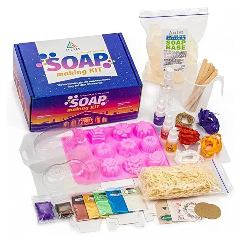 ALEXES Набір для виготовлення мила: Цей набір «Зроби сам» - знахідка для початківців, оскільки він включає в себе докладну ілюстровану інструкцію з виготовлення домашнього мила.