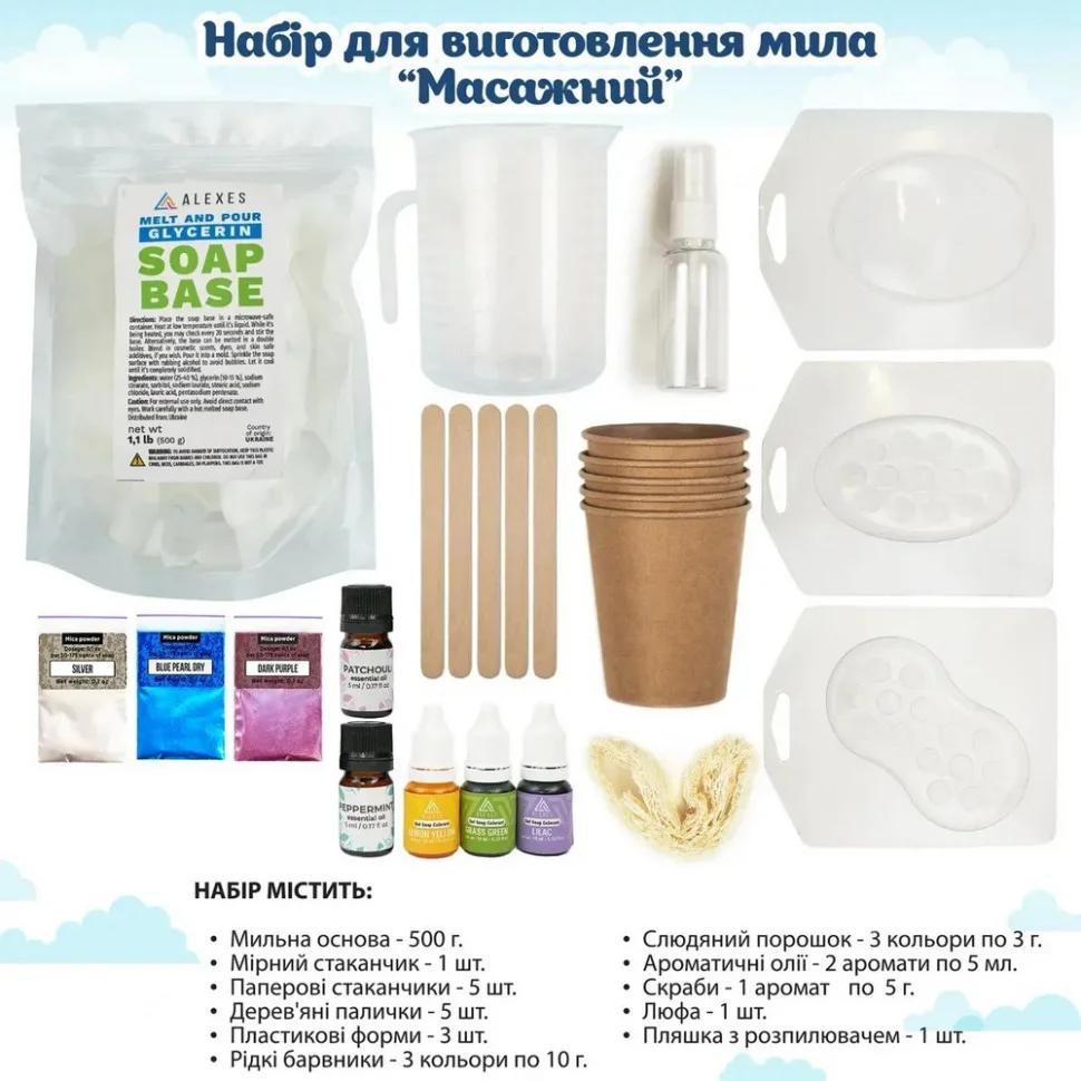 З цим набором для виготовлення масажного мила ви можете відчути себе справжнім майстром, створюючи неповторні подарунки для себе та своїх близьких. Наш набір ідеально підходить для тих, хто хоче знайти для себе нове захоплююче хобі. Ретельно підібрані інгредієнти та детальна інструкція допоможуть вам якнайшвидше стати миловаром-початківцем.