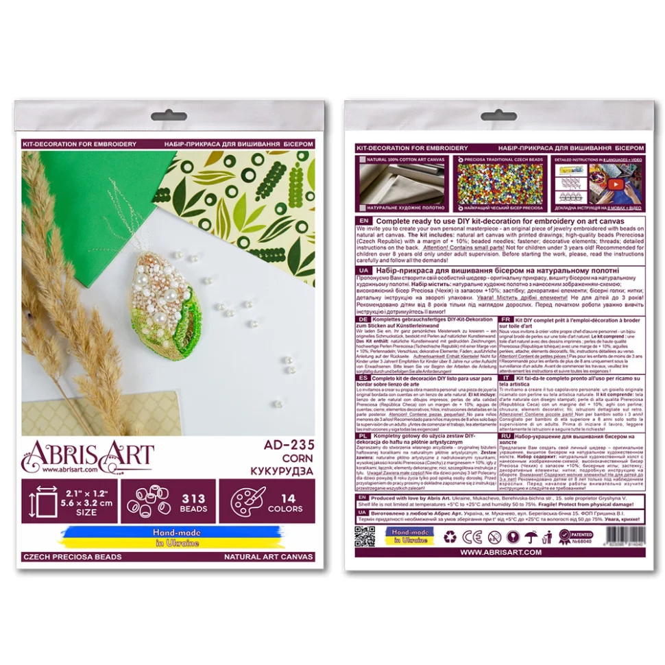 У кожній дбайливо зібраній коробці Набір для вишивання бісером прикраси на натуральному художньому холсті "Кукурудза " після придбання та доставки Ви знайдете: великий відріз натурального художнього холста з нанесеним зображенням-схемою (тканини для вишивання) більше, ніж розмір картини - 32 х 56 мм. - з достатнім запасом, щоб зручно було вишивати та оформлювати готову картину! Найкращій у світі бісер Preciosa Ornela (Чехія), з "запасом" - більше, ніж 313 намистин, вискоякісні бісерні голки з Японії, декоративні елементи, фетр (основу прикраси), всю необхідну фурнітуру, а також найголовніше - детальну інструкцію, схему для вишивання бісером з ключем, спеціально розроблену нашими дизайнерами для кожного сюжету окремо і вже нанесену на холст!