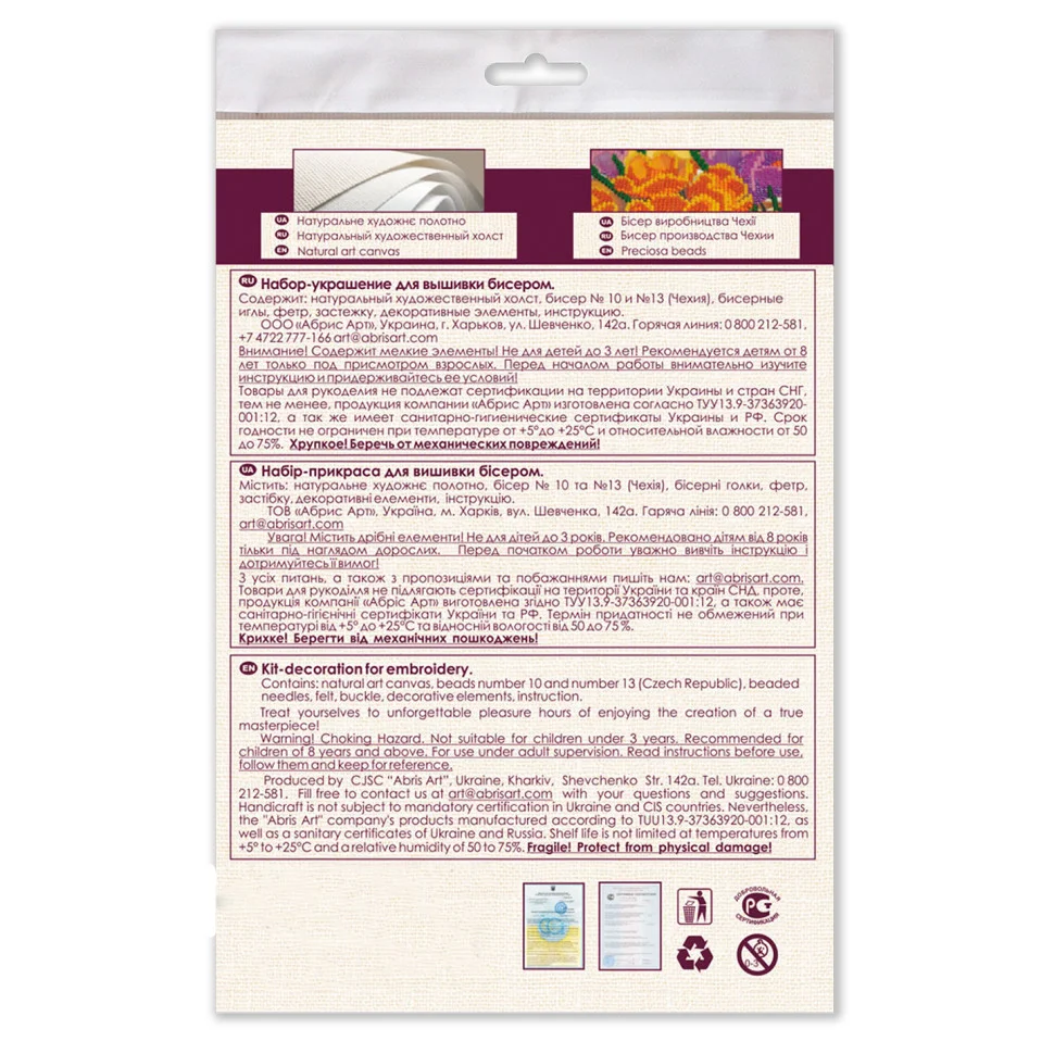 Набір для вишивання бісером прикраси на натуральному художньому холсті "Золота бджілка" привнесе додаткову нотку душевного тепла та затишку до Вашої оселі, адже ширина її складає: 70 міліметрів, а висота: 55 міліметрів, а кількість бісеру (намbстин) 489 шт. Така прикраса (брошка) бісером також буде чудовим подарунком для близьких - адже найкращий подарунок той, що зроблений власноруч! І навіть не важливе кінцеве призначення - важливо які емоції будуть отримані протягом цих неперевершених годин - коли Ви будете вишивати набір для створення прикраси бісером від Абрис Арт. Наші авторські схеми та набіри для вишивання бісером мають стильний сучасний дизайн, комплектуються якісною бавовняною основою - холстом (тканиною для вишивання), найкращім у світі бісером Preciosa Ornela (Чехія), бісерними голками з Японії, декоративними елементами, фетром (основа прикраси), фурнітурою та детальною надрукованою кольоровою символьною схемою з ключем, інструкцією з описом всіх видів швів бісером, що застосовуються і рекомендаціями з оформлення відшитої бісером роботи, щоб навіть початківець легко орієнтувався в процесі вишивання. Увага для всіх, хто хоче купити схему! При вишиванні бісером по тканині використовується схема - нанесений на тканину малюнок, що значно полегшує процес роботи, оскільки на полотні нанесена схема для вишивання. Збоку від схеми знаходиться ключ – відповідність номера кольору бісеру та позначення на схемі. Для зручності читання схеми колір символу на тканині може відрізнятись від реального бісеру в набірі Набір для вишивання бісером прикраси на натуральному художньому холсті "Золота бджілка". Перед початком роботи тканину (холст) з нанесеним малюнком ви можете натягнути на дерев'яну рамку за допомогою кнопок, також можна вишивати на п'яльцях прямокутної форми, або просто тримаючи схему для вишивки з набіру на руках. Якщо п'яльці великі, то полотно можна «наростити», примітавши по краях додаткові смужки тканини, це залежить від обраного вами полотна. Вишивати краще капроновими або бавовняними нитками, можна використовувати 100% РЕ, білого або бежевого кольору в одну нитку. Якщо є віск - навощите нитку (притиснути нитку пальцями до воску і протягнути через нього, надлишок воску видалити, просмикнувши нитку через пальці). Це потрібно для того, щоб нитка не вилася і не плуталася.