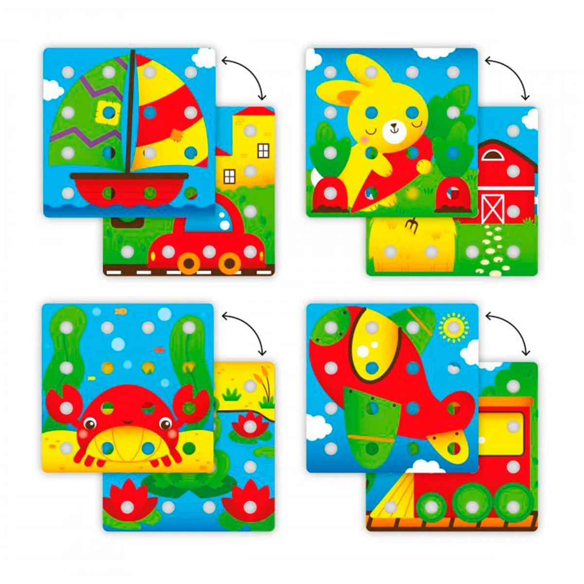 - Приберіть ілюстрації, і основи з фішками стануть оригінальною грою-конструктором, що дозволяє дітям будувати вежі або будь-яку конструкцію, яку вони побажають.