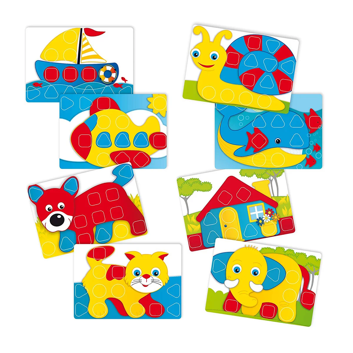 - Малюк зможе створювати картини за зразками або вигадати власні сюжети