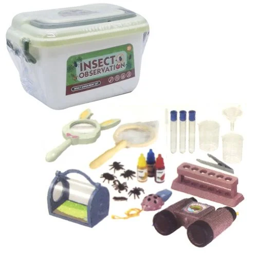 Ігровий набір для дослідів стане ідеальним подарунком для дітей, які люблять природу і прагнуть дізнаватися більше про світ комах. Набір містить бінокль, пробірки, пінцет, лупу, сачок, флакони з "реактивами" та інші наукові аксесуари; є моделі комах для детального вивчення; контейнер для зберігання знайдених зразків; компактна пластикова валіза розміром 23×15,5×14 см. Взаємодія з даним набором сприяє розвитку логічного мислення, допитливості та дрібної моторики. Виготовлено з якісного та безпечного пластику.