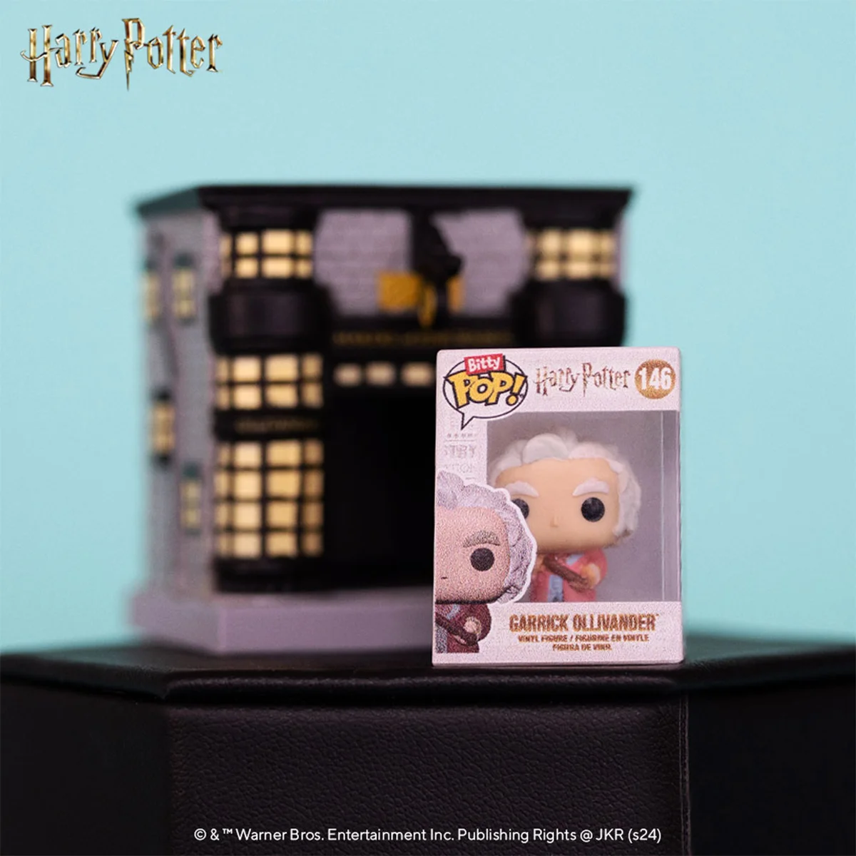 Набір фігурок BITTY POP! Town – ОЛІВАНДЕР І КРАМНИЦЯ ЧАРІВНИХ ПАЛИЧОК стане чудовим подарунком для шанувальників фільмів «Гаррі Поттер». Ласкаво просимо до крамниці Олівандера! Сам майстер допомагає Гаррі обрати першу паличку. І для вас тут знайдеться ідеальна – недарма палички Олівандера вважаються найкращими у Європі!