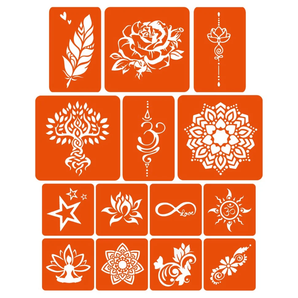 трафарети безпечні для шкіри і підходять для нанесення тимчасових тату всіх типів: гліттер-тату, хною, оксамитом, пігментом, джагуа-гелем тощо;