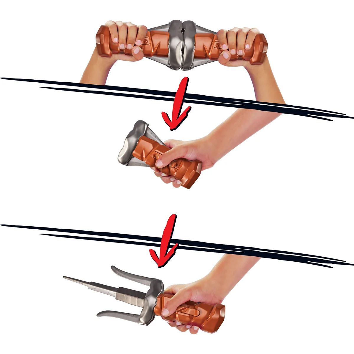 Коли лиходії атакують, вивільніть силу шаблі Рафа поворотом зап'ястя, натисканням кнопок і клацанням зап'ясть - леза шаблі розкриються і будуть готові до дії! Коли битва виграна, просто вставте леза назад у руків'я, клацніть і скрутіть руків'я разом - і ви готові до наступного бою.