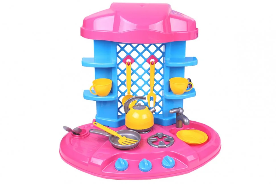 Велика ігрова кухня ідеально підходить для маленьких кухарів-аматорів, які люблять готувати разом з мамою. Граючи можна придумувати власні кулінарні шедеври, сервірувати стіл і пригощати гостей, а також наводити порядок після бенкету. Така сюжетно-рольова гра виховає у Вашого малюка фантазію, відповідальність і самостійність. У набір входить 22 елемента, в тому числі набір іграшкового посуду на дві персони (чашки, тарілочки, кухонні прилади і чайник).