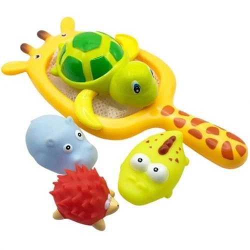 Оригінальний набір іграшок для ванни, в який входить 6 яскравих мʼячиків-піщалок та сачок у вигляді жирафи, за допомогою якого можна грати з мʼячиками. Кожна іграшка має унікальні деталі, які допоможуть розвивати моторику малюків, а також стимулювати їхню уяву та креативність під час гри у воді. Розмір сачка: 28х15х2 см. Розмір одного мʼячика: 6х6х6 см.