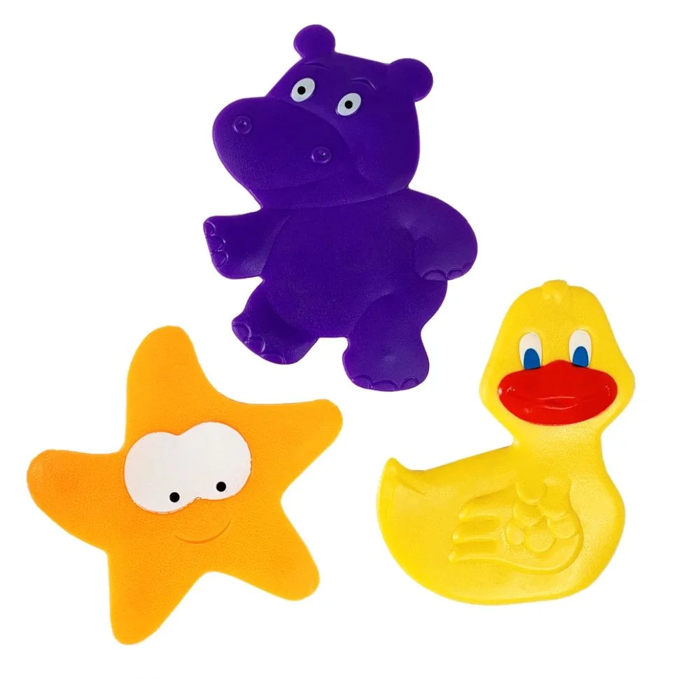 Міні-килимки для ванни – Ці міні-килимки сприяють розвитку моторики, допомагають дитині вивчити кольори та представників тваринного світу. Закріпивши їх на кахлі, або ж на самій ванній дитина з цікавістю їх розглядатиме і сконцентрує на них свою увагу.