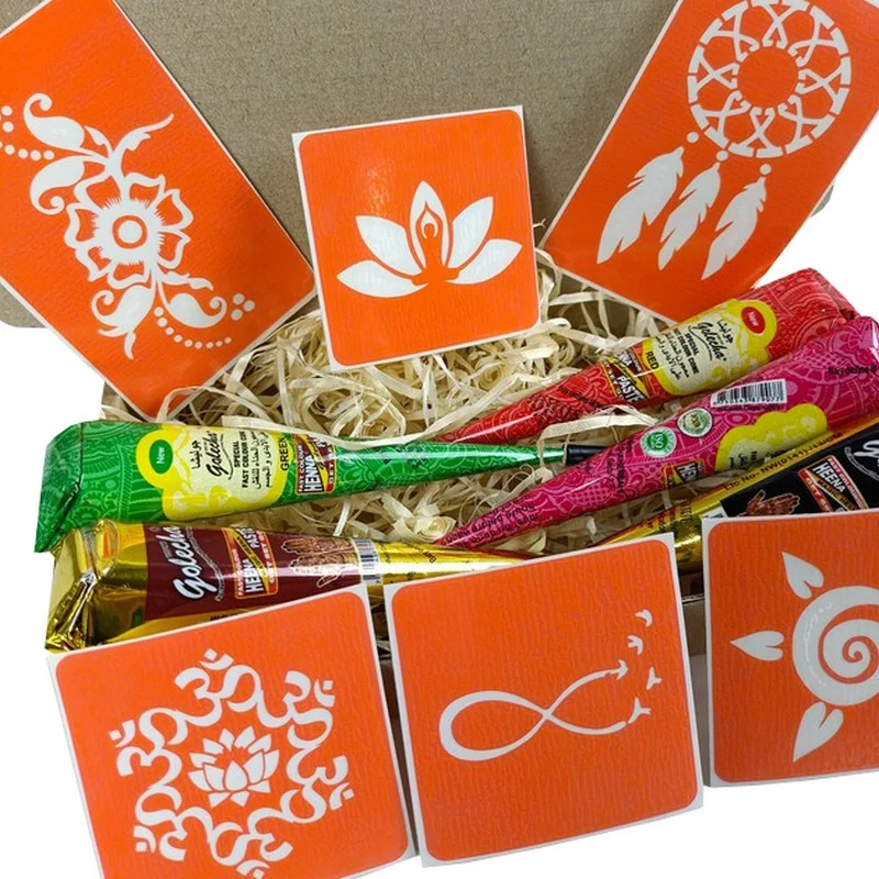 Набір кольорової хни з трафаретами для біо-тату №2 від Fresh Tattoo містить: