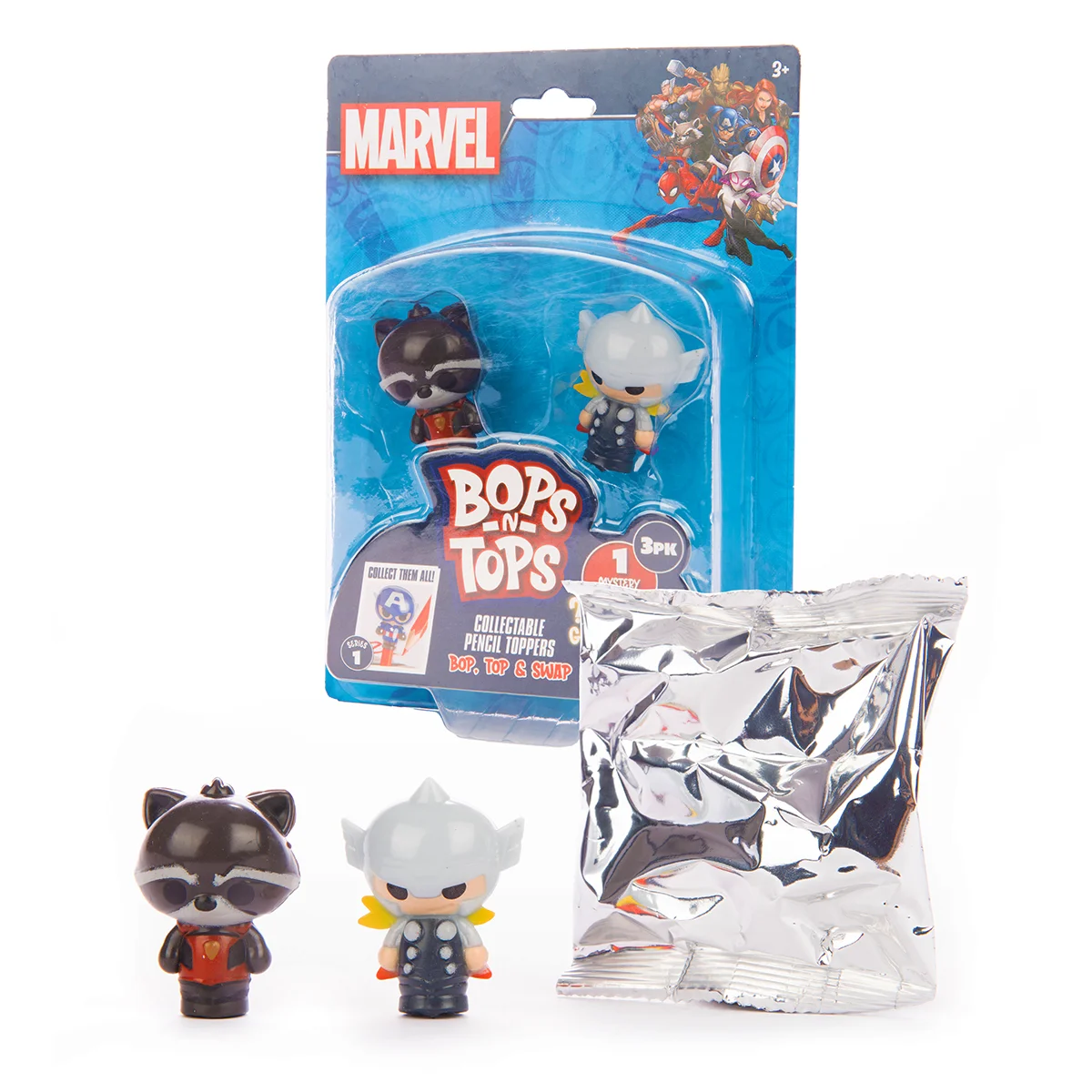 Зустрічайте улюблених героїв зі всесвіту Марвел! Яскраві фігурки-топери серії «Bop n Tops» додають креативності та веселощів у повсякденну письмову роботу чи виконання завдань. Фігурки-топери у вигляді улюблених героїв Марвел можна одягти на олівець чи ручку, збирати колекцію та грати як самостійними фігурками! Обирайте, хто з героїв Вам більше до вподоби?