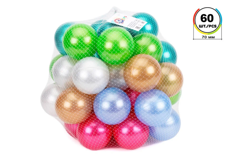 У наборі 60 кульок, розмір 70 мм.