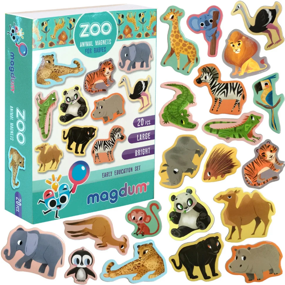 Набір ламінованих магнітних фігурок «Зоо». За допомогою барвистих магнітів діти познайомляться з тваринами, навчаться розрізняти розміри і особливі ознаки. Фігурками зручно грати на будь-якій поверхні, оскільки вони великі, міцні, дуже практичні. Для дітей від 3 років. Комплектація: 20 магнітів з тваринами. Розмір коробки: 12 × 17 × 3,7 см.