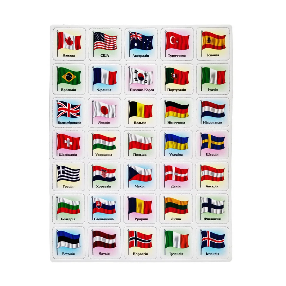 Набір магнітних фігурок "Прапори" від виробника Artos із зображеннями прапорів. Магнітні фігурки допоможуть дитині познайомитися з прапорами, навчитися розрізняти їх, класифікувати за особливими ознаками. Магніти великі, міцні, безпечні, практичні.