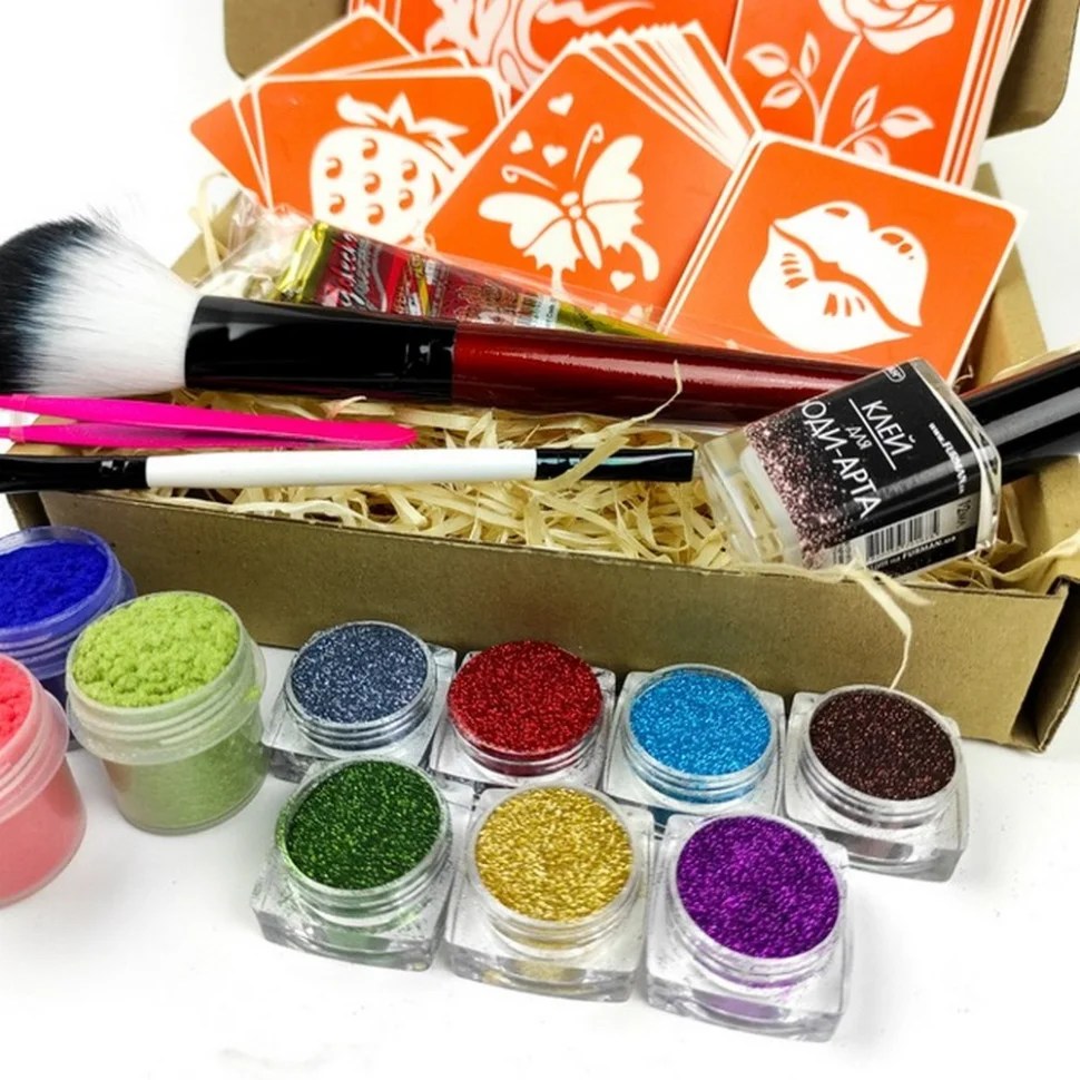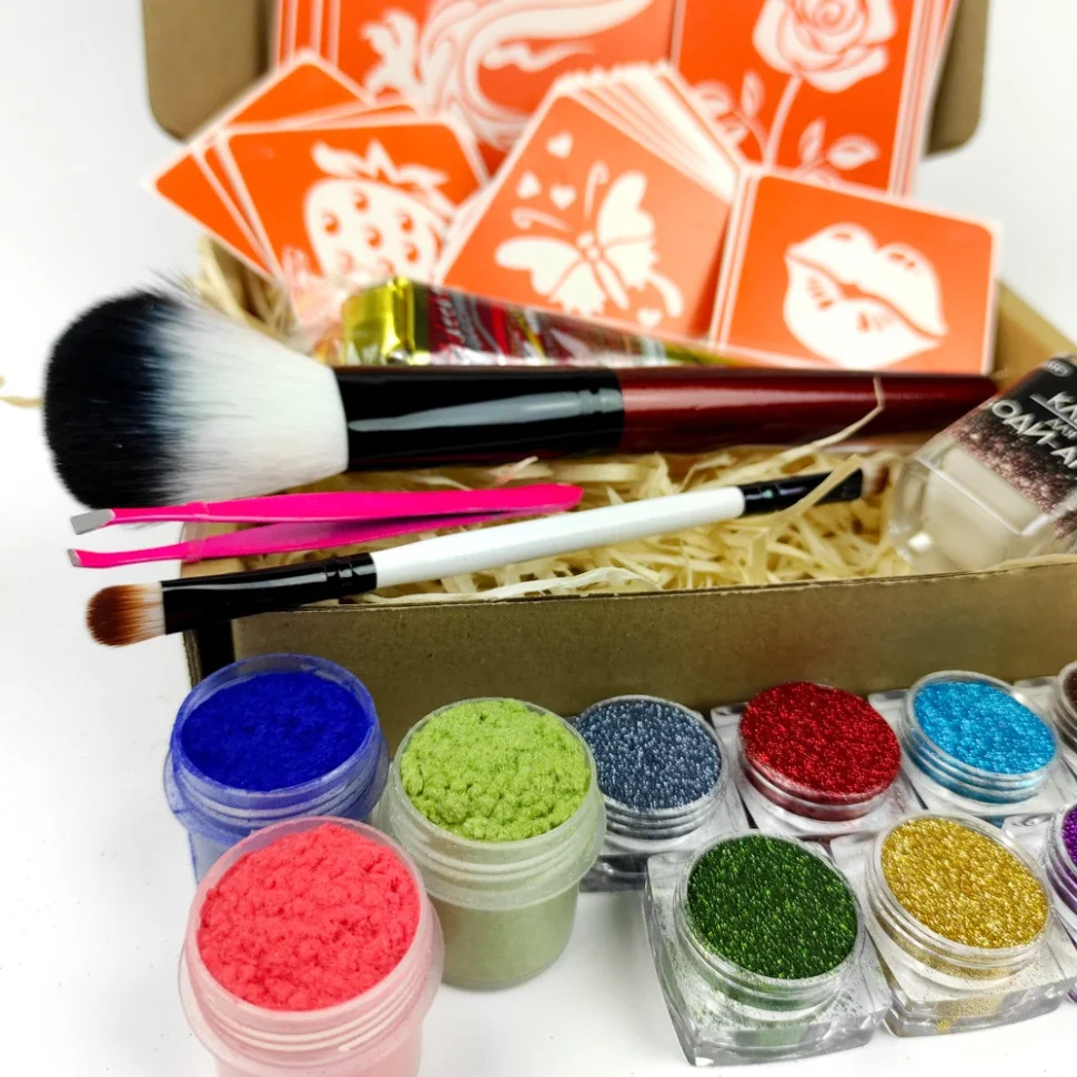 трафарети Fresh Tattoo безпечні для шкіри і підходять для нанесення тимчасових тату всіх типів: гліттер-тату, хною, оксамитом, пігментом, джагуа-гелем і так далі;